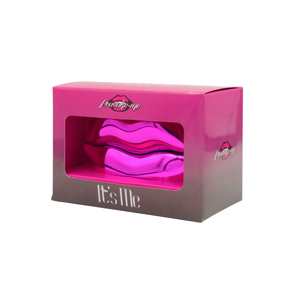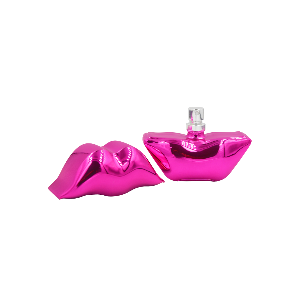 - • Frasco em formato de lábios rosa metálico, que simboliza poder, sensualidade e amor-próprio.